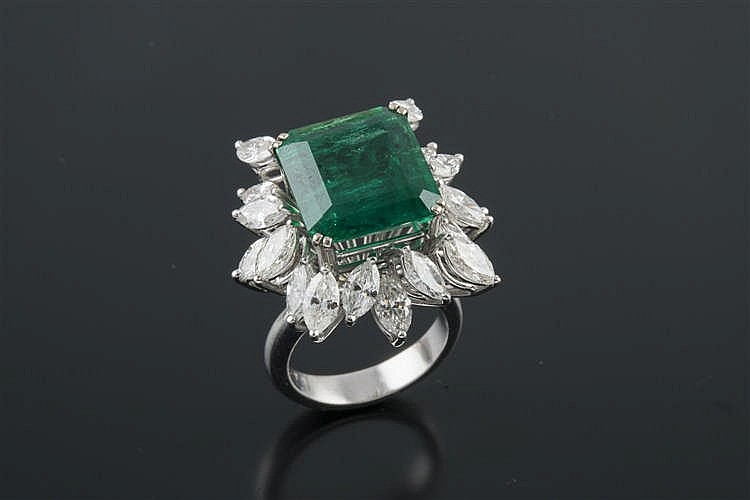 - Sortija de diamantes y esmeralda