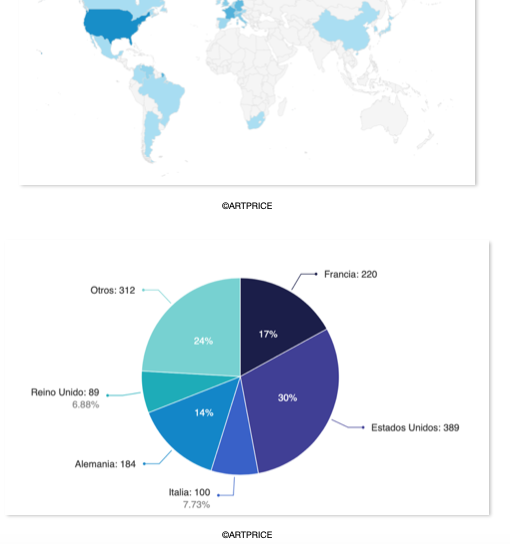 La distribución geográfica de sus obras adjudicadas en subasta no hace más que evidenciar el principal mercado del artista y es que solo en Estados Unidos cuenta con 12 galerías de representación frente al mismo número, pero divididas entre Alemania, Italia, Francia, Suiza y España, en Europa.