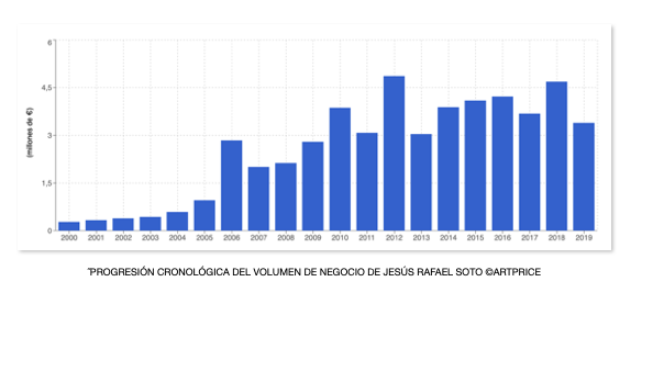En consecuencia, el récord del artista ha crecido considerablemente con el paso del tiempo. Según Artnet Analytics, el récord de venta de Soto en el año 2000 se situaba en 93.000 $, subiendo a los 419.000 $ cinco años después, para llegar a los 758.000 $ en el año 2010. Estamos ante un incremento de valor de su récord del 815% en diez años. Según el portal Art Price, el valor de sus obras se ha incrementado desde el año 2000 en un 69%, un crecimiento estable desde el año 2000 donde solo destacan pequeñas subidas los años 2006, 2010, 2012 y 2018 coincidentes con los grandes subidas en subasta.