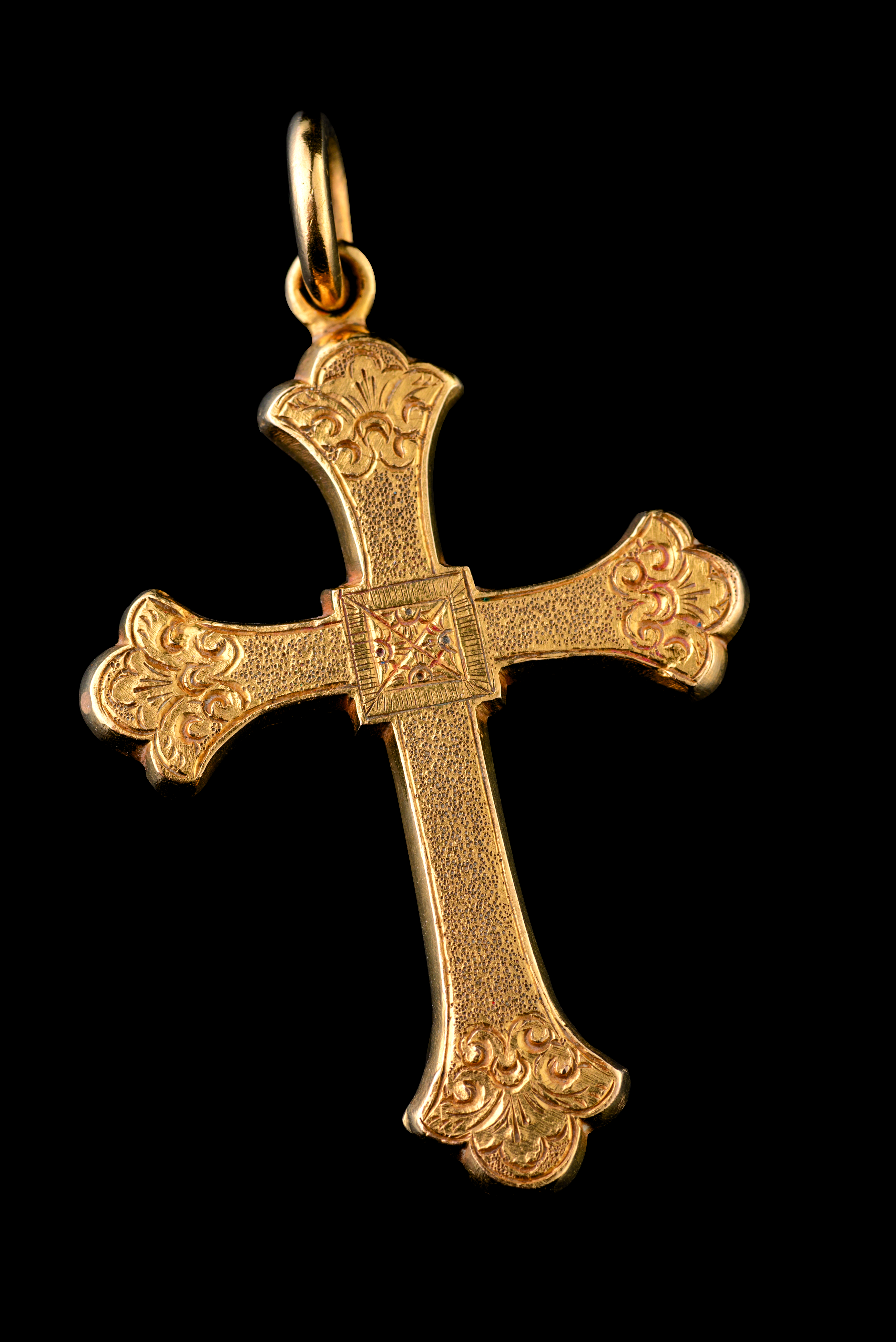 - Cruz de oro de 18kt, probablemente española. Precio de salida: $ 24.000.000