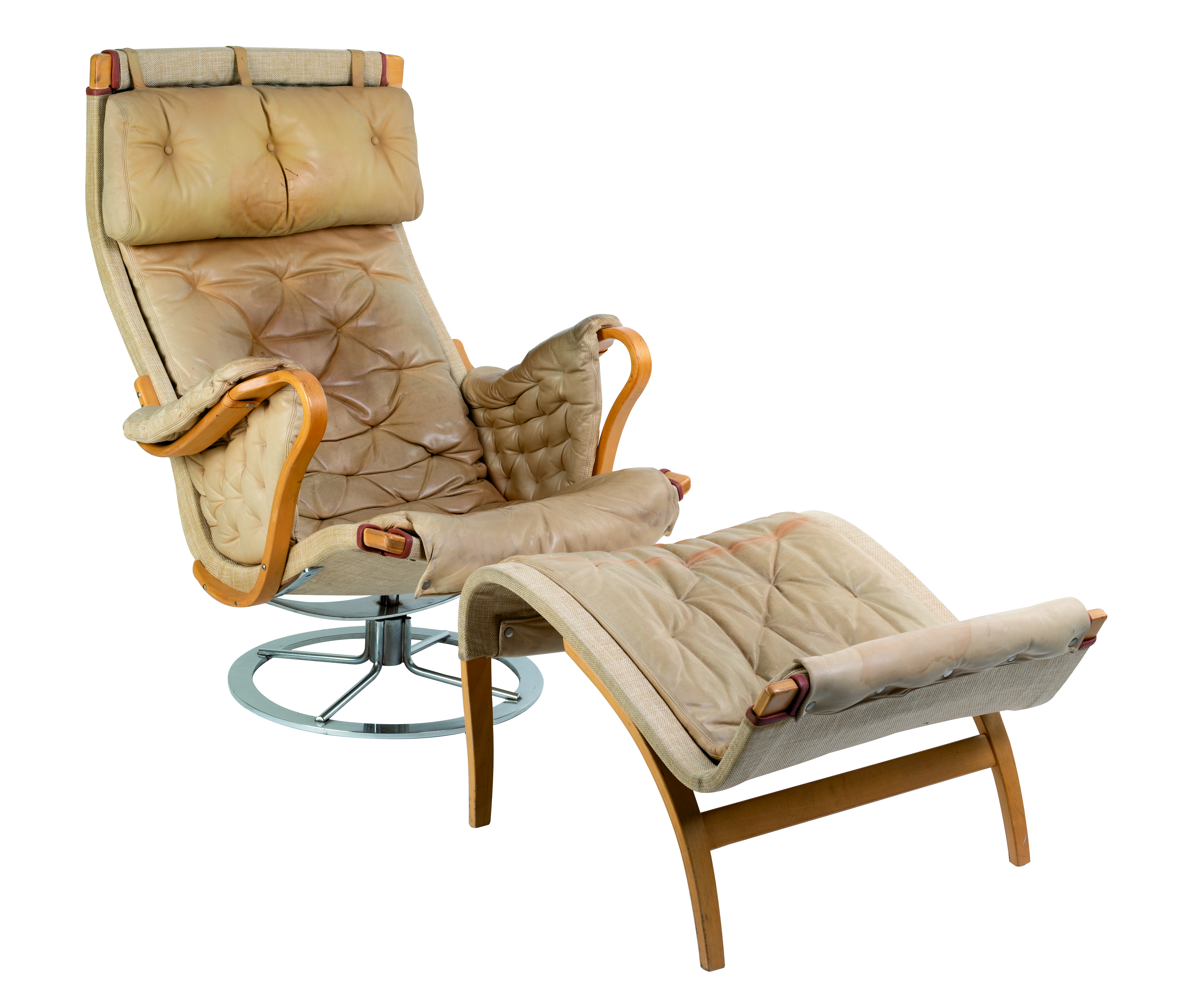 - Silla Pernilla. De Bruno Mathsson. Cuero y madera. 100 x 85 x 155 cm. Precio de salida: $ 9.200.000