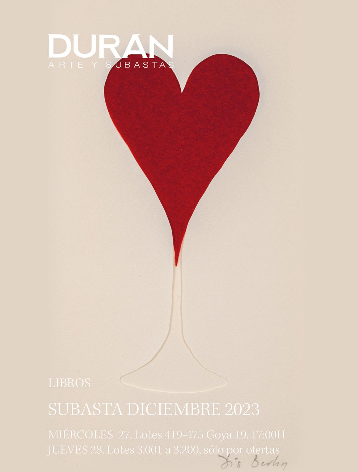 Durán Arte y Subastas, cierra 2023 con una subasta en la que se ofertan interesantes obras gráficas y originales de arte contemporáneo, una gran selección de joyas y artes decorativas, pintura antigua, libros, muebles y alfombras. 27 y 28 de diciembre a las 17:00 horas.