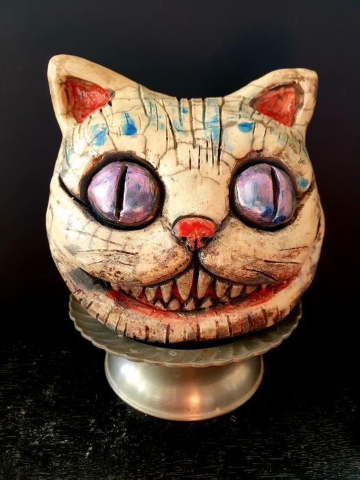 Cabe destacar tres importantes lotes procedentes de Catawiki. El primero es una figura de la cabeza de Terminator, con su caja original, realizada por el veinte aniversario de la película. Su formato de calavera la trae a esta sección. El siguiente, una máscara original de Jason, de Viernes 13, ¡con certificado de autenticidad! Y cerramos con una cerámica raku de Chesire Cat, de Puka (Ljiljana Pastorovic), de este mismo año: quien dijo que un gato no da miedo es que no ha visto nunca Alicia.