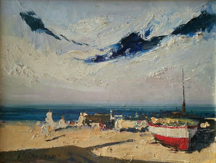 - Marina con barcos y personajes, Josep Martínez Lozano