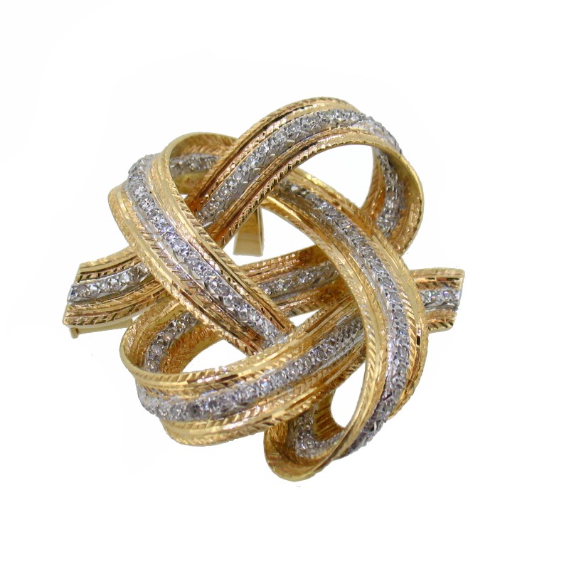 - Broche en oro de 18k formado por dos cintas onduladas
