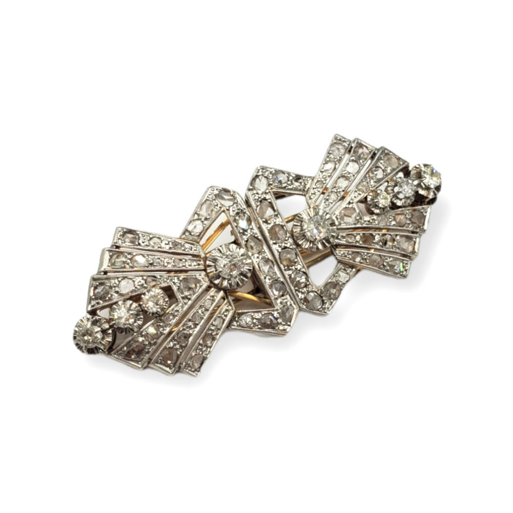 - Broche doble clip Art Déco en oro de 18k c