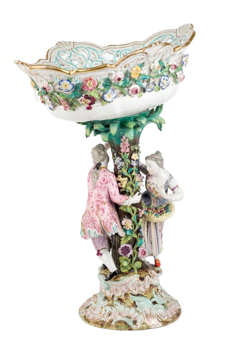- Lote 691. ESCUELA ALEMANA S XIX. Delicado centro de mesa realizado en porcelana alemana, de la Manufactura Meissen. S. XIX.