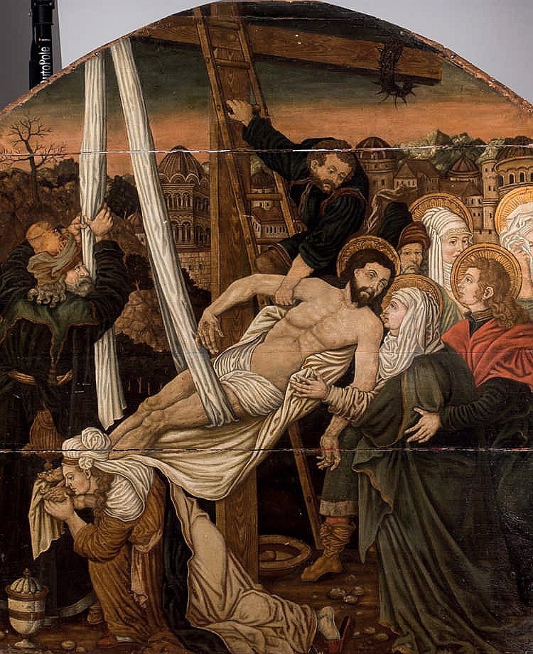 Dentro del área de obras de arte (pintura, escultura, numismática, arte tribal, arte chino, y un largo etc.) cabe destacar la primacía de dos pinturas extraordinarias de los siglos XVI y XVII que se subastarán este jueves. La primera es el lote 103, una pintura flamenca de principios del siglo XVI. Representa un Descendimiento al estilo de Roger van der Weyden, lo cual hace pensar a los expertos que pueda provenir de los talleres de Brujas o Amberes, famosos por su producción de gran calidad durante la época, y profundamente influidos por la obra de van der Weyden: detalle que podemos ver en la figura de San Juan y en la diagonal que conforma el cuerpo de Cristo. Al tiempo, aún será necesaria más evolución para alcanzar el grado de naturalismo y perfección en la plasmación de las emociones humanas. Se incluye un informe manuscrito de Javier Morales Vallejo. Su precio de salida está fijado en 25.000€ y pueden pujar por esta obra aquí.