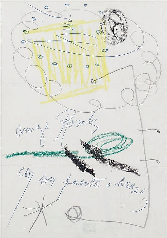 Ya en pleno siglo XX encontramos dos obras profundamente interesantes, y que a su vez son consecutivas en subasta: los lotes 179 y 180. El lote 179 está conformado por Dos composiciones del pintor Joan Miró, en técnica mixta sobre papel, con dedicatoria firmada en ambas. Miró, al igual que muchos otros artistas del siglo XX, contiene su importancia en el estudio teórico de sus obras y trayectoria, en la evolución de su pensamiento y teoría artística. Su precio de salida está fijado en 22.500€ y pueden pujar por esta obra aquí.