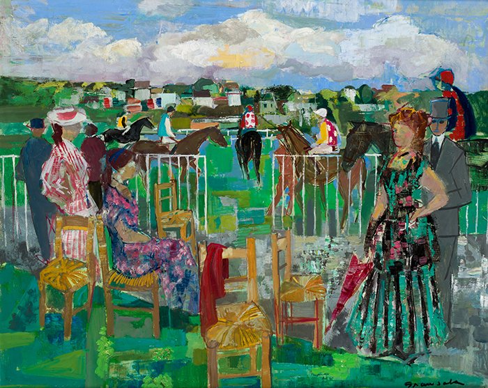 En Ansorena encontramos como se materializaban muchas de las pesquisas de los analistas del arte salido a subasta, como fueron las pinturas de Emilio Grau Sala (Barcelona, 1911 – París, 1975). El pintor catalán vuelve a despuntar en el panorama del mercado del arte español, después de un cierto tiempo en el olvido colectivo y de que apareciera en escasas subastas y con obras menores, salvo por la plataforma de venta de arte online Catawiki, que suele tenerlo bastante presente en sus ventas. Uno de los lienzos que encontró un final feliz en manos de un nuevo propietario fue La sortie de chevaux a Deauville (60 x 74 cm), un óleo sobre lienzo fechado en 1963, que alcanzó los 28.000€ desde los 24.000€ iniciales. Como decíamos, parecía algo olvidado, y es que aunque ahora mismo nos parezca un precio de martillo alto para el artista, antes habríamos pensado que era sumamente económico. También salía a subasta Interieur a la cage (54 x 65 cm), un óleo sobre lienzo que se adjudicó a un teléfono por el precio de salida: acorde al catálogo, 9.000€.
