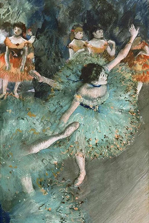 - Bailarina basculando (bailarina verde) (1877-1879). Pastel y gouache sobre papel. 64 x 36 cm