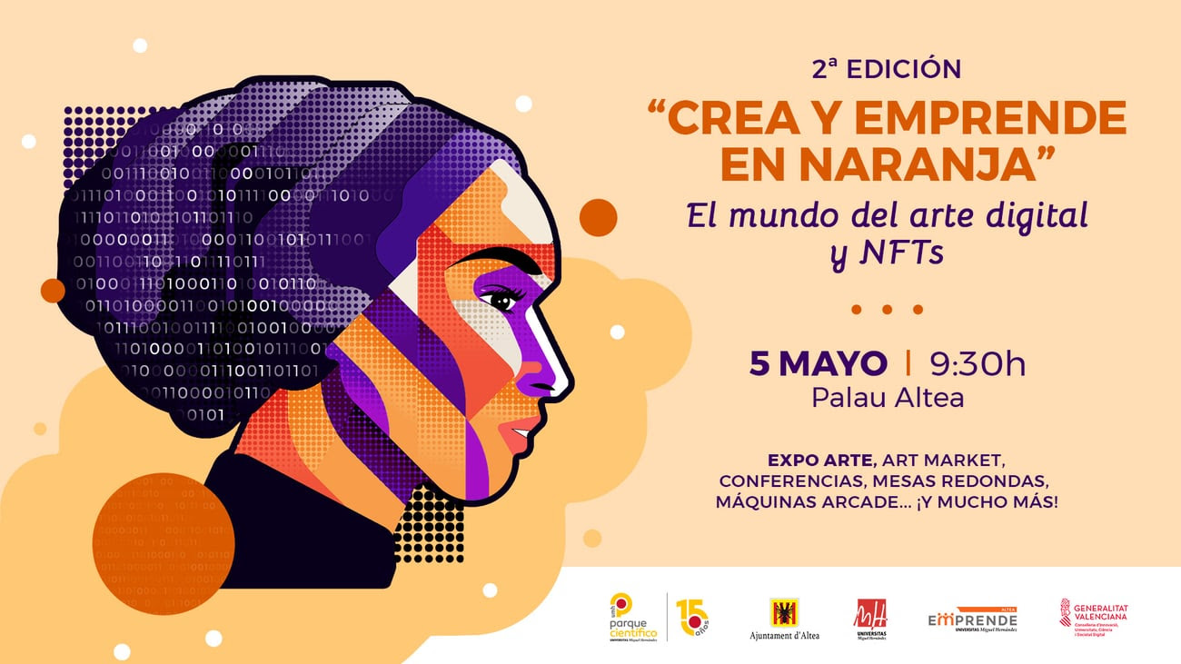 Acercar la revolución digital del mundo del arte, promover el talento y potenciar la cultura emprendedora del entorno de Altea. Con este objetivo, y debido al éxito de la anterior convocatoria, el Parque Científico de la Universidad Miguel Hernández (PCUMH) de Elche y el Ayuntamiento de Altea han organizado la segunda edición de Crea y Emprende en Naranja. En esta ocasión, el evento reunirá a artistas apasionados por el diseño, el mundo digital y los NFTs, y aglutinará conferencias; visionado de vídeoarte, vídeo animación y vídeo performance; art market; exposiciones de arte y máquinas de arcade.