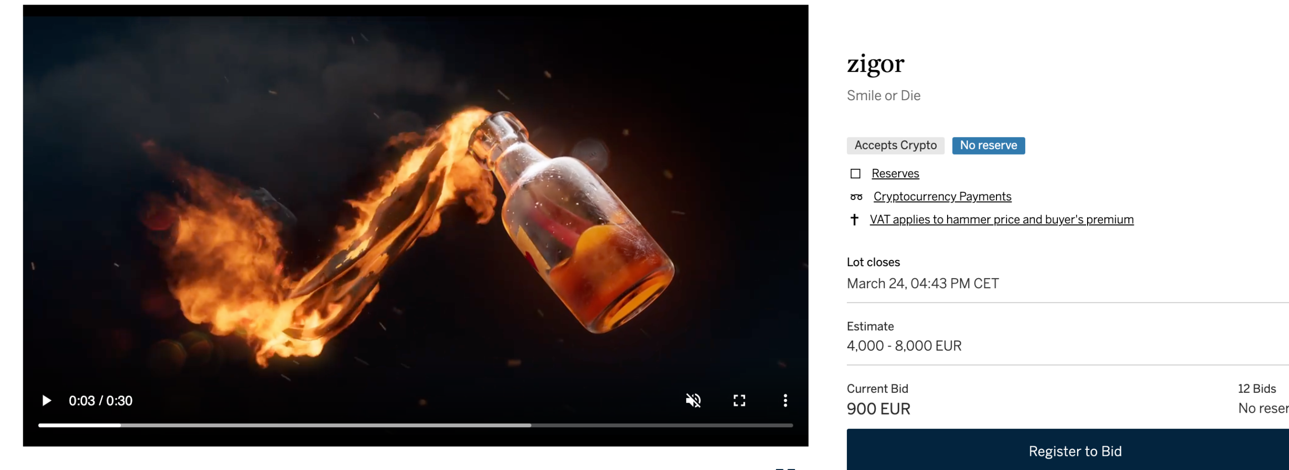 Se trata de profesionales reconocidos dentro de las industrias creativas de la publicidad, la música y el cine cuyas obras seguro que asombrarán e inspirarán. Estamos orgullosos de apoyar y presentar las obras de artistas como Anyma, ARC, Andreas Wannersted, Beeple, Clement Morin, Jon Noorlander, Ryan Talbot, Filip Hodas, Lucas Zanotto, Olivier Latta y muchos más. Muchos de los artistas presentados en esta venta han formado parte del movimiento NFT desde 2020.