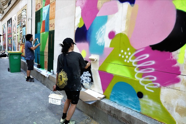 Al día siguiente se procedió a pintar un muro de la Rue San Martin, cerca de enclaves como el Centro Pompidou y el Palais Royal. Sin duda, el movimiento del arte urbano en la ciudad de París es intenso: podemos ver, entre otras cosas, la exposición del artista Doze en Openspace con el 70% de la obra vendida en el primer día de la misma.