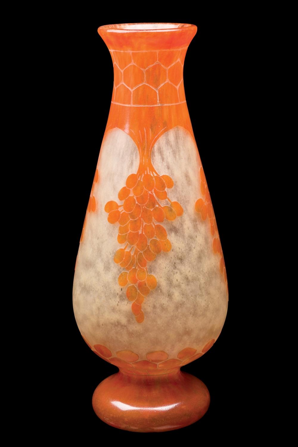 - Jarrón en vidrio doblado en marrón y naranja pálido sobre un fondo amarillo claro y con un acabado satinado mate.