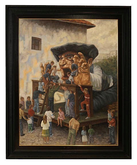 Como detalle, reflejar el lote 1029, un óleo sobre lienzo de Itziar Etxebarría titulado Gargantua (176,5 x 143 cm) con marco de madera, que sale a subasta por un precio de 1.000€ (ver).
