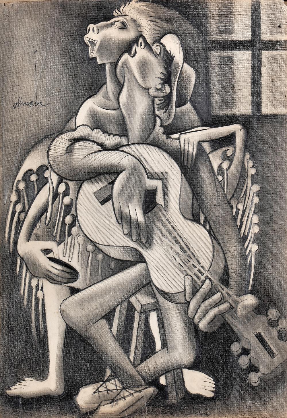 ALMADA NEGREIROS – 1893-1970, “Fadistas”, lápis sobre papel, pequenos defeitos no papel. CABRAL MONCADA. Remate: 65.000€