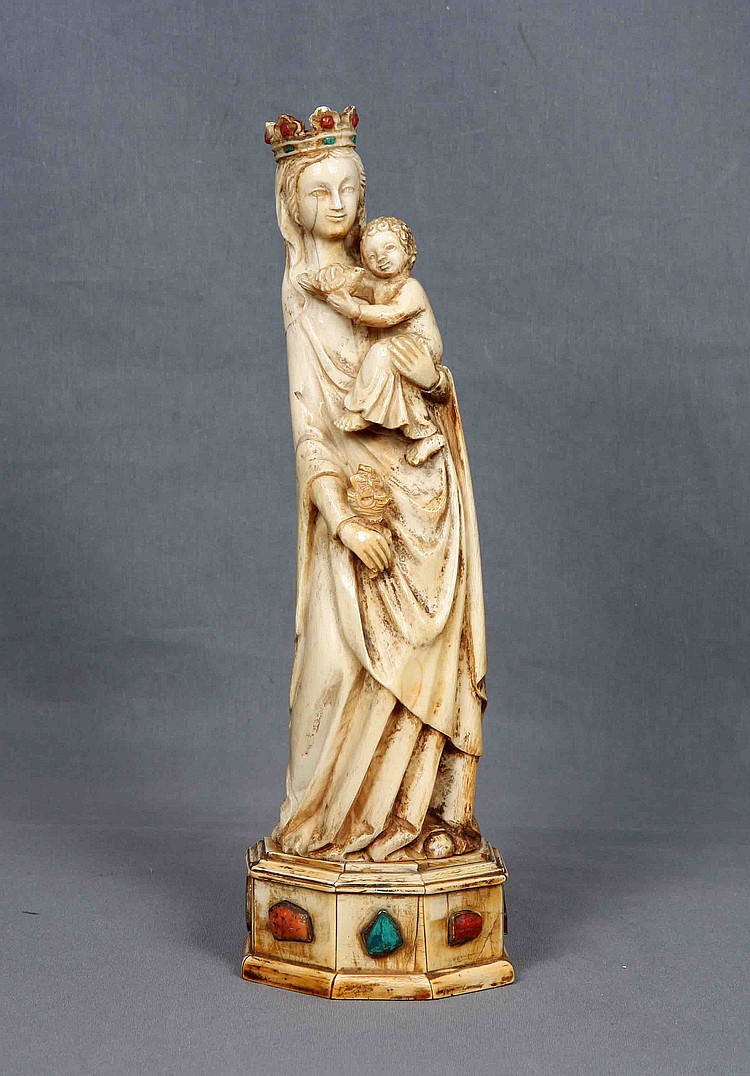 Comienza su catálogo con una selección de escultura, principalmente orientada hacia la escultura crisoelefantina. Entre estas, destaca una figura de Virgen con Niño estilo neogótica (35 cm de altura), procedente de Francia de finales del siglo XIX. Está realizada en marfil tallado, y presenta un precio de salida de 2.500€ (ver). Acto seguido encontramos una selección de joyería y relojes, entre los cuales vemos un L.U. Chopard de oro con la esfera blanca, incluyendo en ella la numeración de aplicaciones. Tiene tapa, pese a ser un reloj de pulsera, en forma de hojas y rematada con brillantes. La maquinaria es suiza, y el mecanismo es de cuerda. Actualmente en estado de marcha, su precio de salida es de 4.000€ (ver).