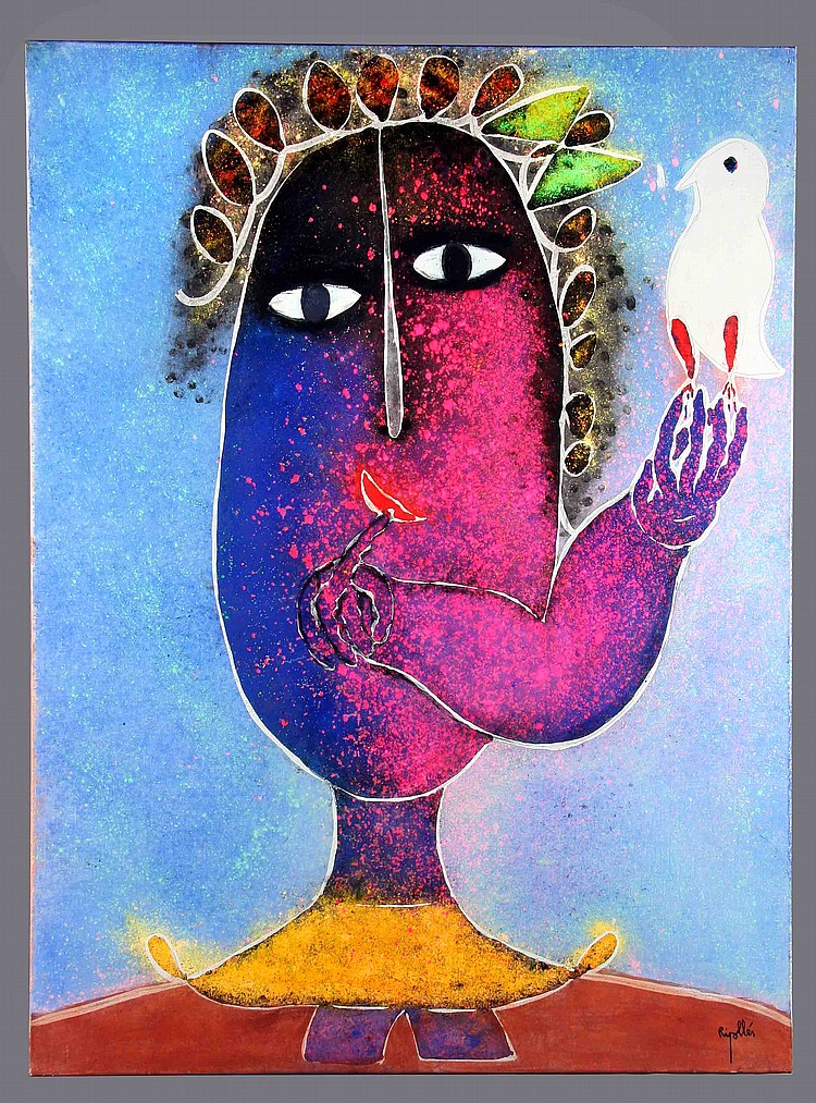 Abarcando ya el grueso de la subasta, el área pictórica, lo primero que podemos encontrar (después de una larga serie de litografías y grabados de artistas destacados como pueden ser Picasso, Monet, Tàpies o Goya) es un Manuel Viola (1916 – 1987) titulado Arlequín con gallo (81 x 62 cm), un óleo sobre lienzo firmado, procedente de los herederos directos del artista. Su precio de salida es de 2.250€, y viene acompañado por otras dos obras de Manuel Viola (ver).