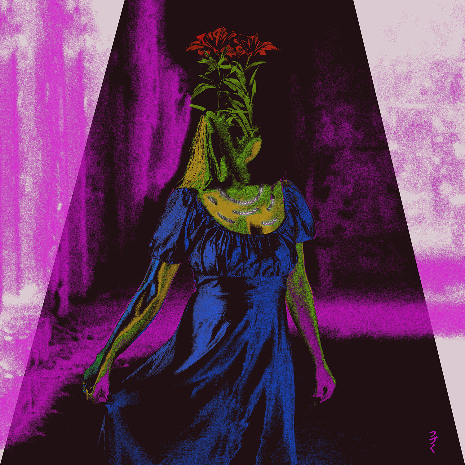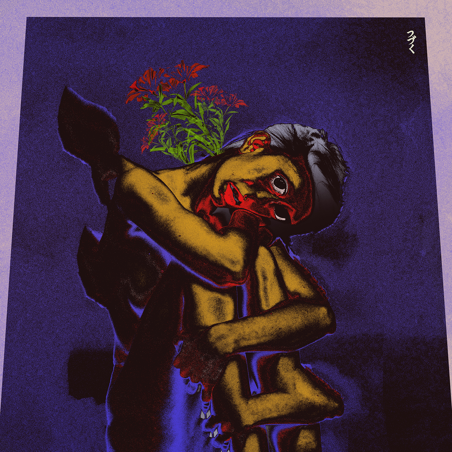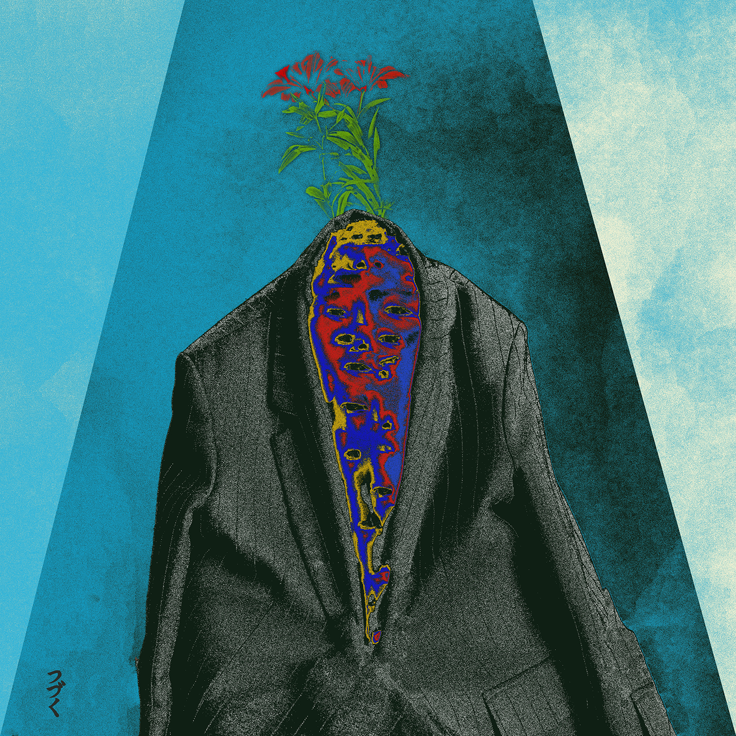 Así que mi trabajo es una mezcla de técnicas de pintura digital mezcladas con algunos métodos de arte digital. Empecé a desarrollar mi propio estilo alrededor de 2017. Quería tener un aspecto único, extraño y alienígena, como las redes de nuestra psicología. Quería que el público mirara mi obra y sintiera que ve dentro de los pensamientos de alguien.Normalmente utilizo photoshop para pintar. Luego utilizo mi propia técnica de capas para crear estos colores nítidos. Casi utilizo la técnica como si fuera pintura real, porque la mayoría de las veces tengo muchos colores ocultos detrás de la capa principal. Si ves un rojo puro o un azul puro en mis obras y te preguntas por qué el color parece diferente, normalmente es porque hay un color amarillo detrás que le da ese aspecto extraño y vibrante. También uso After Effects y Premiere Pro para cualquier animación y composición.