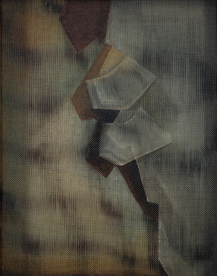 - MANUEL RIVERA Granada 1927-Madrid 1995 Espejo roto III. 1985 Malla metálica y pintura en marco elegido por el artista Dorso, firmado, titulado y fechado 1985 Medidas 45 x 35 cm