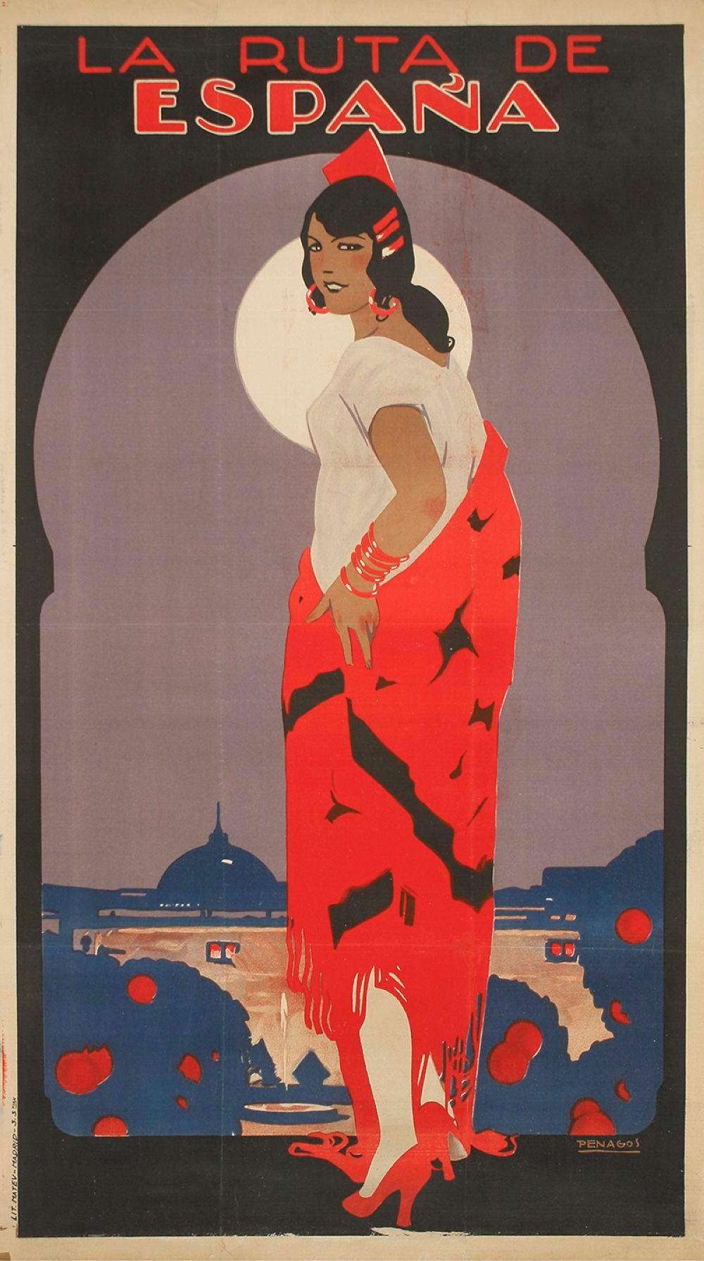 Otro artista que no necesita presentación es Rafael de Penagos, avanzamos ya en el tiempo, la España de los años 30, los diseños buscan otro lenguaje más geométrico, equilibrado, en el caso de Penagos, las mujeres siguen siendo las protagonistas de sus carteles.