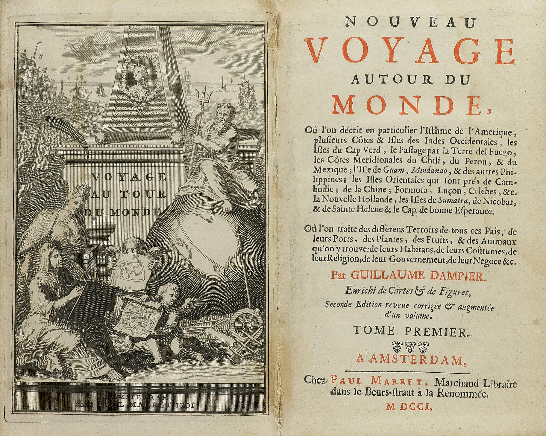 1701-1705. LIBRO. (VIAJES). DAMPIER, GUILLAUME:. NOUVEAU VOYAGE AUTOUR DU MONDE. OÙ L’ON DÉCRIT EN PARTICULIER L’ISTHME DEE L’AMERIQUE, PLUSIEURS CÖTES & ISLES DES INDES OCCIDENTALES, LES ISLES DU CAP VERD..