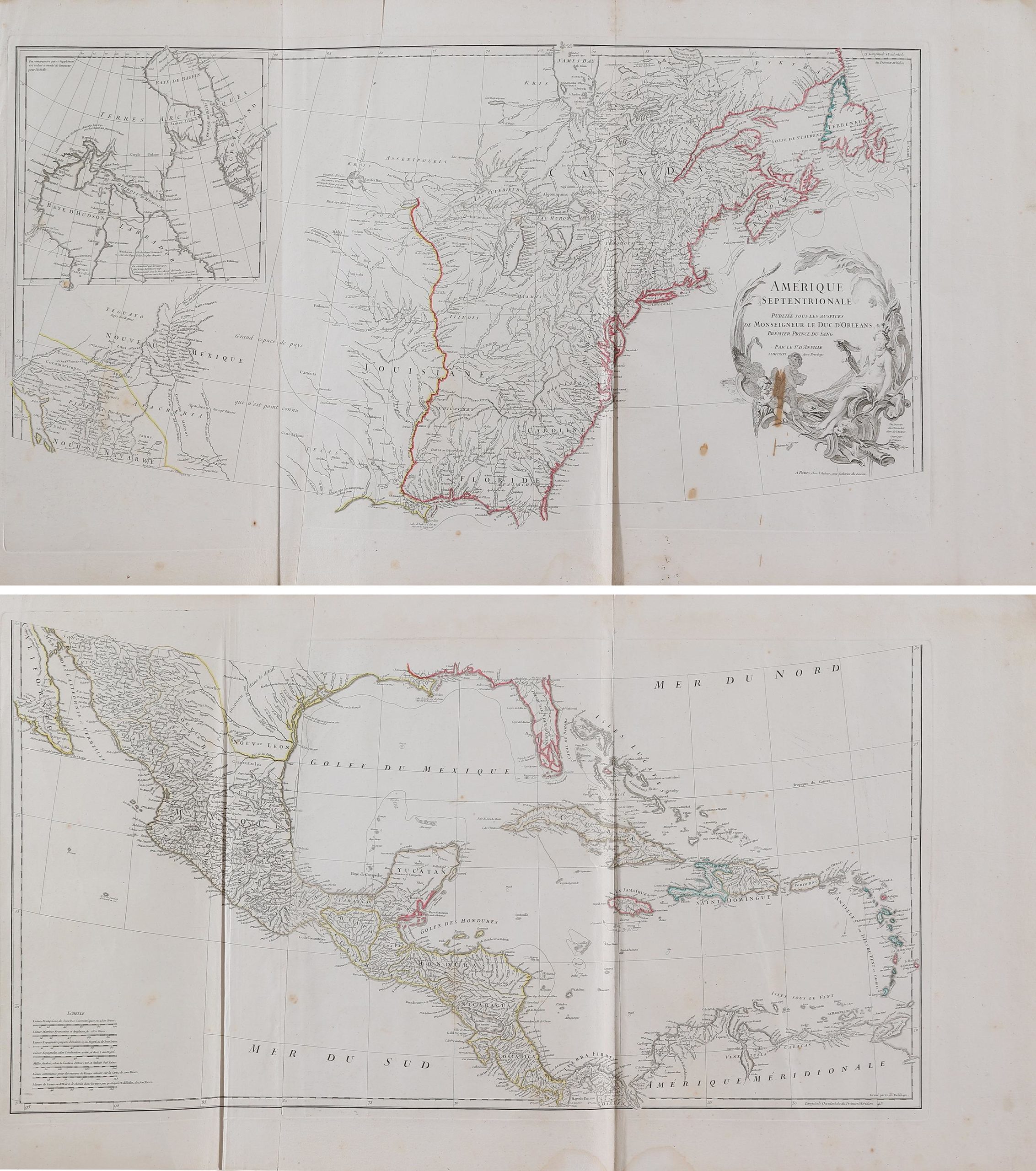 Muy interesante también este ATLAS, D´ANVILLE, [JEAN-BAPTISTE BOURGUIGNON:]: CARTES GEOGRAPHIQUES DE MEXIQUE… París: Chex L´auteur, 1779. Gran folio. Contiene 37 mapas, el autor contó con la colaboración de grabadores como Coypel o de la Haye.