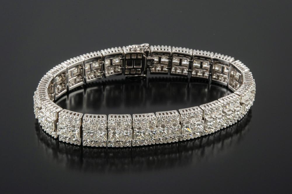 - Lote 112: Pulsera en oro blanco con tres bandas de diamantes talla princesa en el centro. Precio de salida: 13.000 euros.