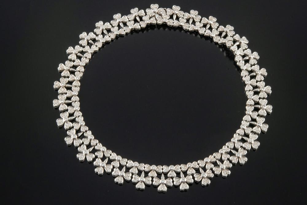 - Lote 146: Gargantilla con motivos de tréboles cuajados de diamantes talla brillante. Precio de salida: 9.000 euros.