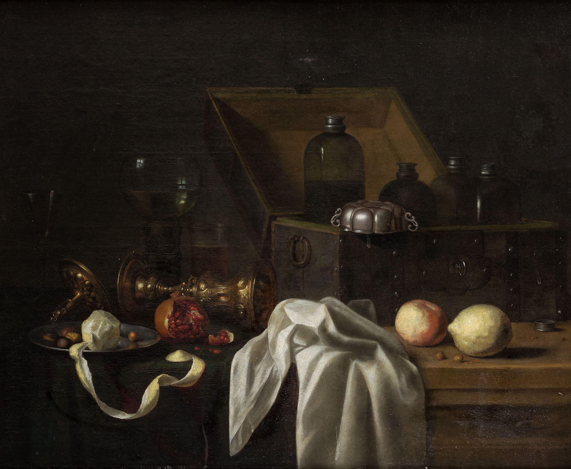 VERELST, PETER. Naturaleza muerta con frutas, cofre y copas. Óleo sobre lienzo. Precio de remate: 18.000€