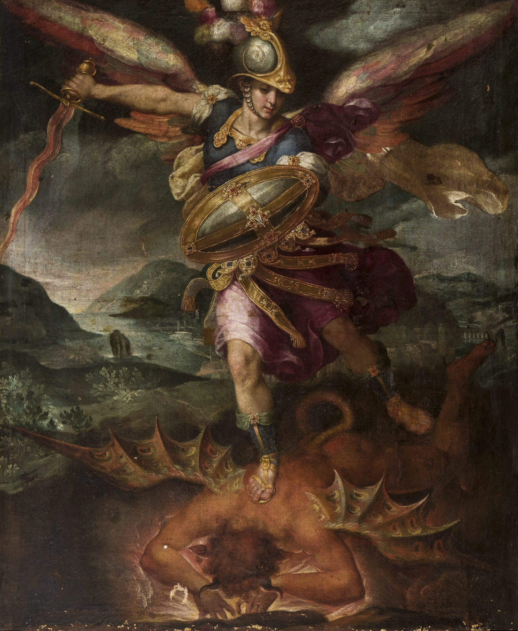 ESCUELA ESPAÑOLA DEL SIGLO XVII. San Miguel Arcángel. Óleo sobre lienzo. Precio de remate: 35.000€