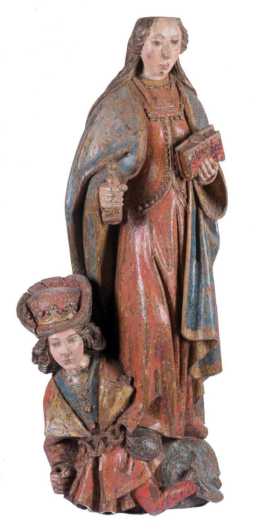 Nos marchamos a las subastas catalanas, donde La Suite presentó licitación. Ya conocemos la especialidad de la casa, la alta época medieval, aunque en este caso también podíamos encontrar ciertos toques de art noveau entre las piezas medievales. Probablemente la pieza más interesante fuera esta Catalina de Alejandría en madera policromada y tallada, del siglo XV y de la escuela flamenca, que salía en unos buenos 9.000€ y se zanjó en 12.000€. En cuanto a escultura, podemos ver también un buen desenlace con la Virgen en majestad Sede Sapientiae, del siglo XIII, en madera tallada y policromada en los 12.000€ de la salida.