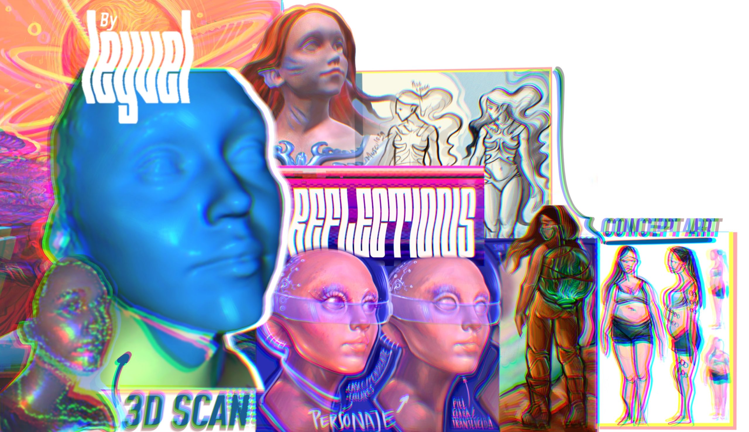 Este es el resultado de un proyecto que me llevó un año de trabajo, la idea surgió de una exposición llamada *Historias del Futuro* en la Fundación Telefónica. En esta exposición se hablaba de cómo los humanos siempre imaginamos el futuro basándonos en cuatro narrativas generales (la teoría de Jim Dator). Esto me pareció muy interesante, y por eso quise crear mis propios mundos futuros en forma de arte contemporáneo. LEYVEL.