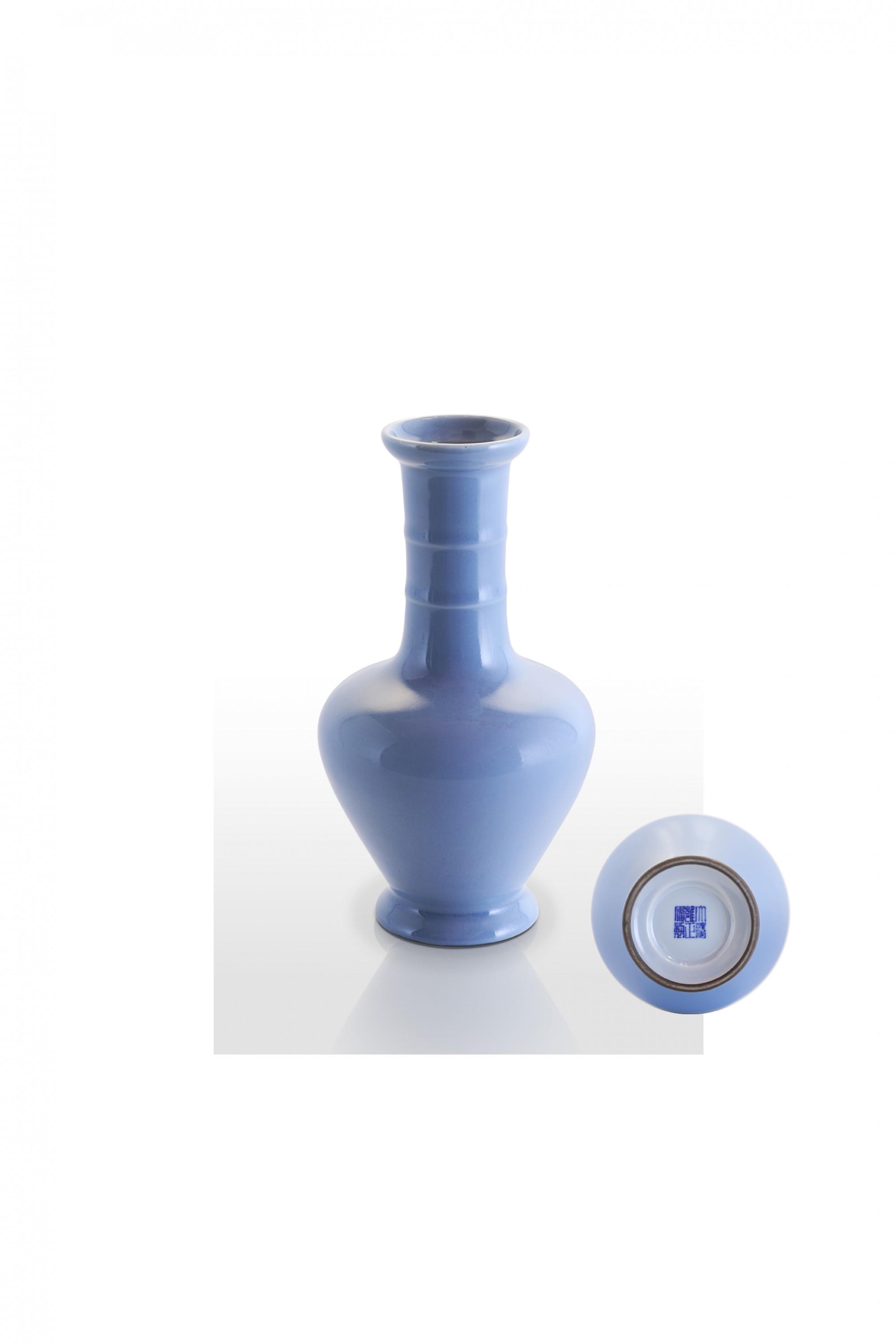 - Jarrón de cuello alto con dos anillos de magnífico color “azul claro” Yongzheng (1723-1735) Sold: 75.000 €