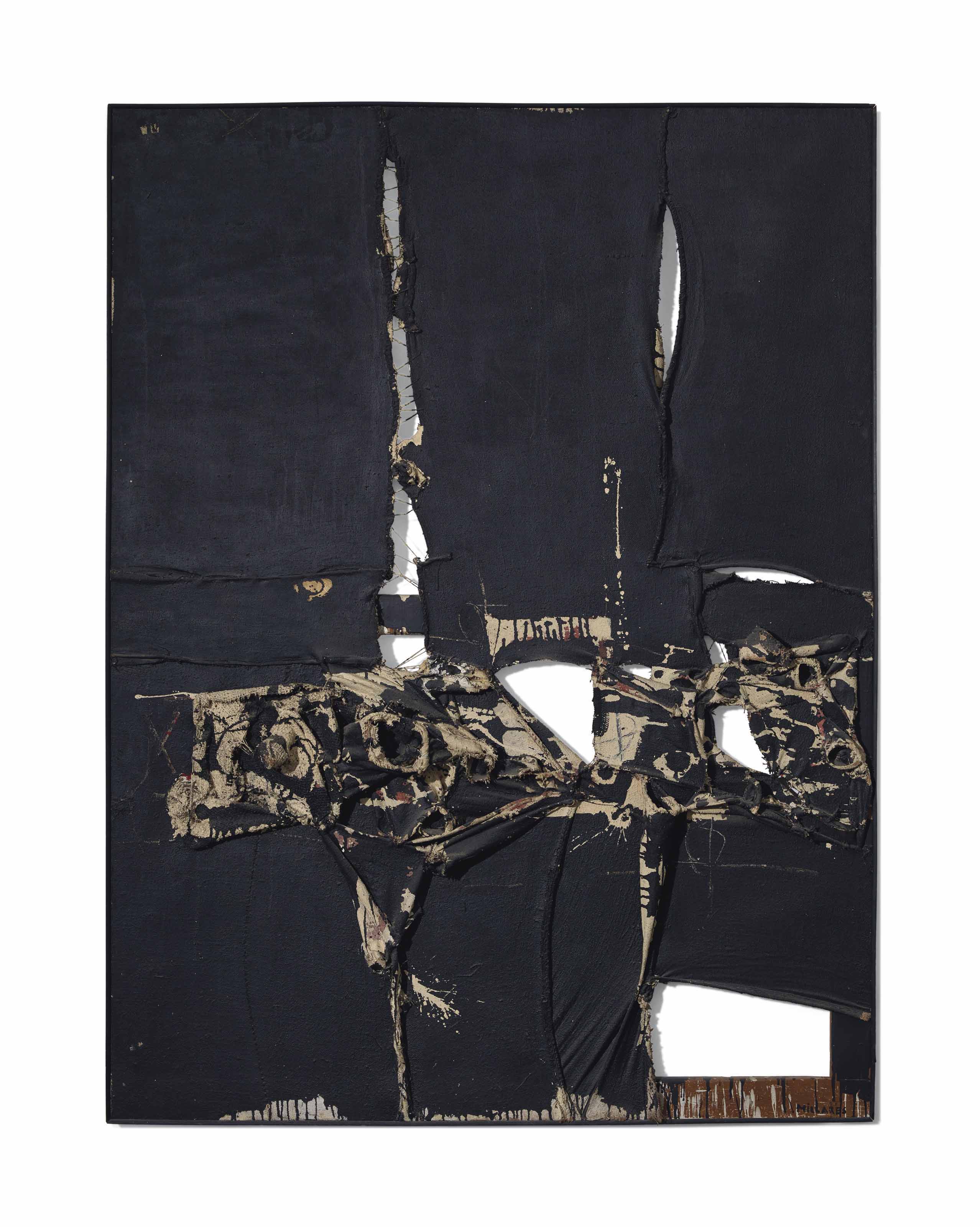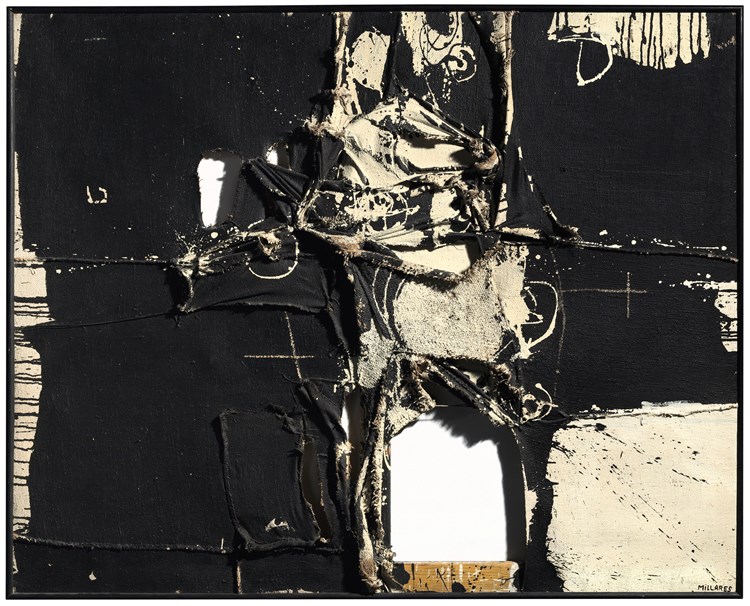 - MILLARES, MANOLO. Cuadro 169. Técnica mixta/lienzo (de jute). 97 x 130 cm. Precio de remate: 360.000€ (2015, Artcurial, París)