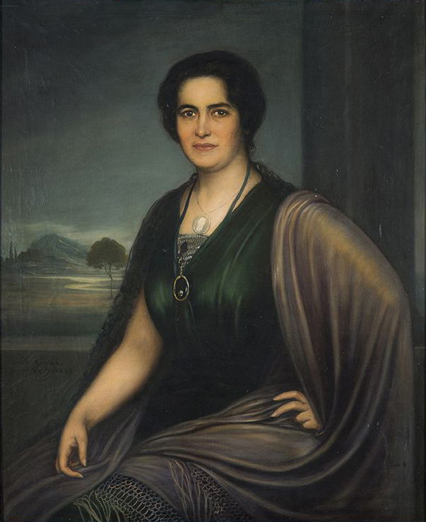 - ROMERO DE TORRES, JULIO. Retrato de Guillermina Aguinagalde. Óleo sobre lienzo. Precio de remate: 27.500€ (Fernando Durán)