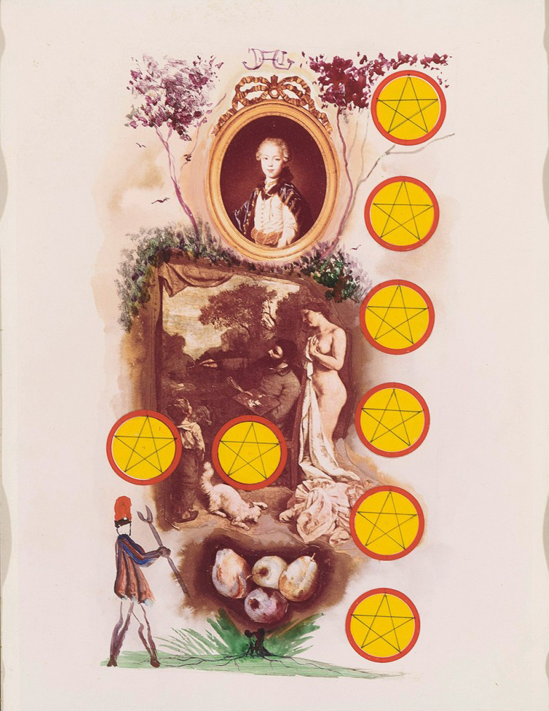 - DALÍ, SALVADOR. Ocho de oros. Técnica mixta sobre papel. Precio de remate: 25.000€ (Retiro)