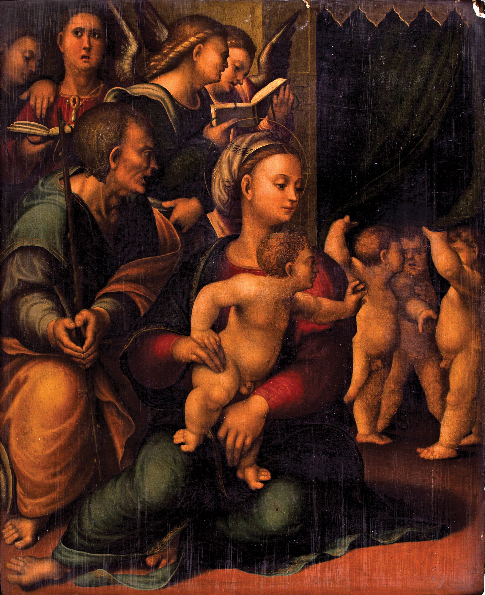 - SACCHI, GASPARE. Virgen con Niño, San José y ángeles. Óleo sobre lienzo. 73 x 59 cm. Precio de remate: 10.000€ (Abalarte)