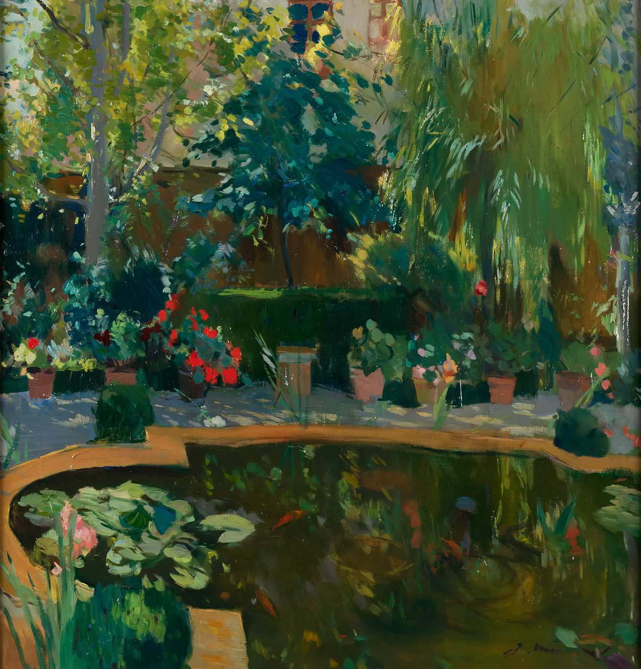 - MIR, JOAQUÍN. Jardín de la casa del pintor. Óleo sobre lienzo. 81 x 77 cm. Precio de remate: 88.000€ (Ansorena)