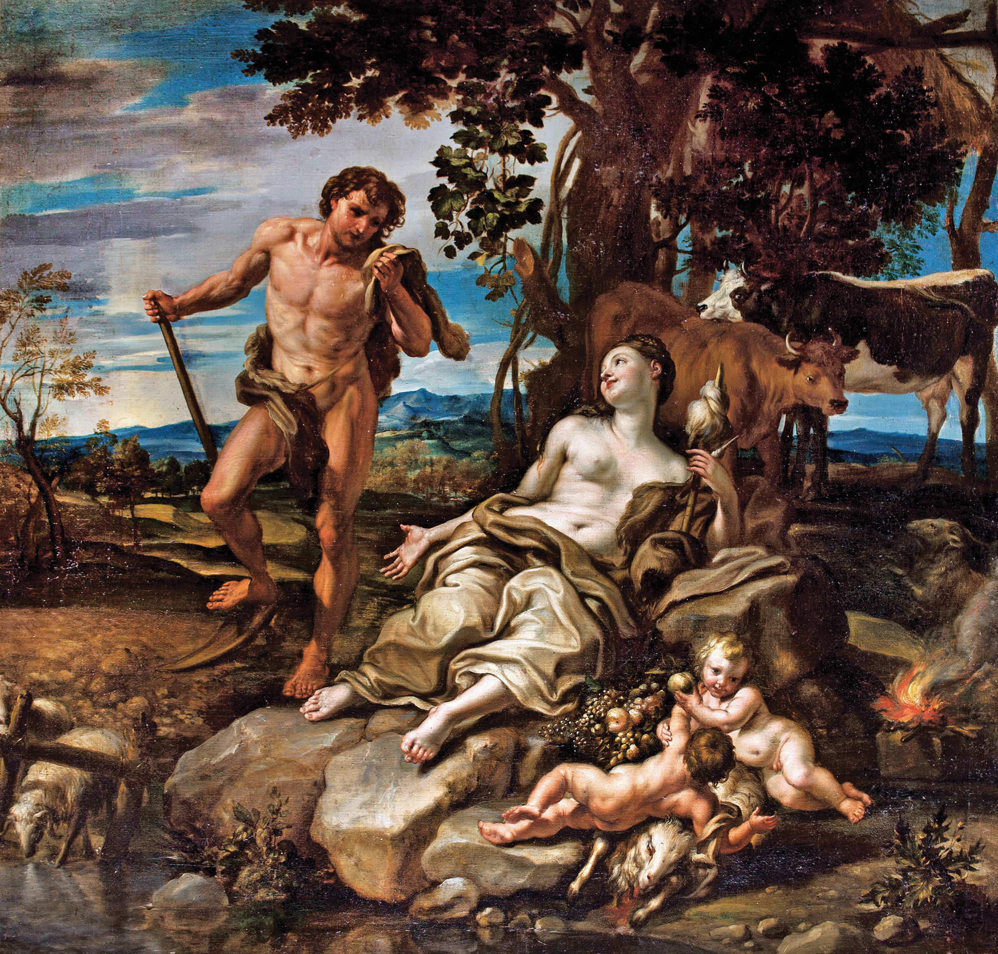 - DE FERRARI, LORENZO. Adán y Eva con Caín y Abel. Óleo sobre lienzo. 91,5 x 94,5 cm. Precio de remate: 25.000€ (Abalarte)