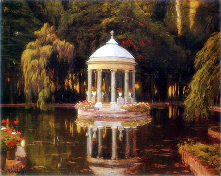Durante la década de 1890 se centró sobre todo en la representación de jardines. Pintó una gran cantidad de obras con esta temática. Empezó en Granada, en el otoño de 1895. Eran jardines rodeados de la arquitectura nazarita de la Alhambra y el Generalife, donde el agua juega un papel importante. A partir de ese momento realizó múltiples viajes a Aranjuez, Mallorca, Girona, dejando plasmados los jardines que iba encontrando a su paso.