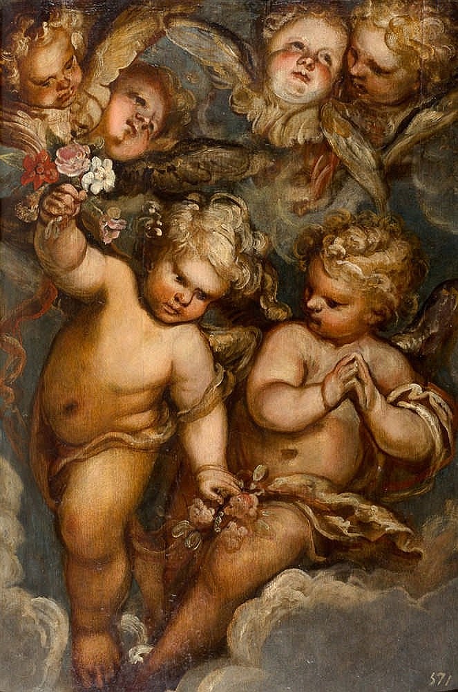 - LOTE 158: ATRIBUIDO A FRANCISCO RIZI (1614 Madrid – 1685, El Escorial). Angelotes. Óleo sobre lienzo. 106 x 70 cm. Precio de salida: 12.000€ (30 de enero en Isbilya Subastas).