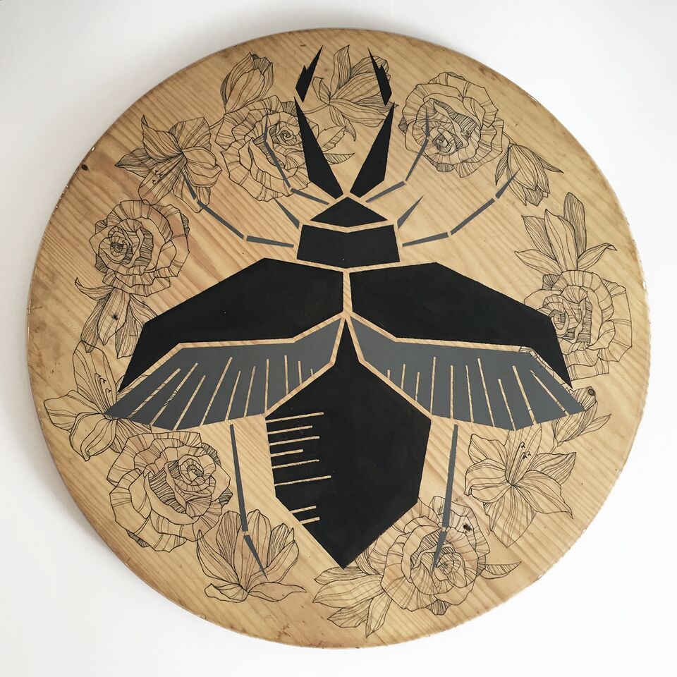 Ya conocida en nuestro blog por un artículo de Nicola Mariani que podéis leer aquí, es una artista nacida en Terrassa en 1982, más conocida como OVNI. Se formó en la Escuela Universitaria del Vapor de Terrassa, diplomándose en Diseño Gráfico, y más adelante en Técnicas Murales en la Llotja de Barcelona. Si bien comenzó creando de manera vinculada a lo orgánico, pronto evolucionó al collage y profundizó en el lenguaje abstracto. Su obra ha tenido cabida en ferias nacionales e internacionales, viajando entre Berlín, Madrid, Ámsterdam y Miami.