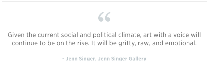 Jenn Singer opina que el arte con mensaje político está en auge “dado el clima social y político que vivimos”.