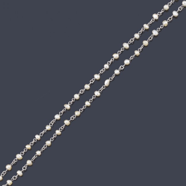 - Lote 1103: Cadena en platino con perlitas 100 cm. Precio de salida: 1.200€