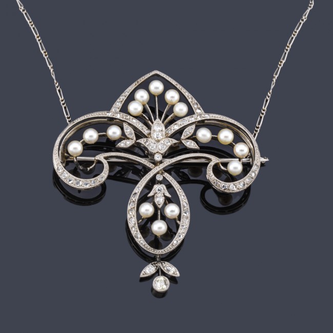 - Lote 1100: Pendentif con diamantes y perlitas. Principios del siglo XX. Precio de salida: 2.000€
