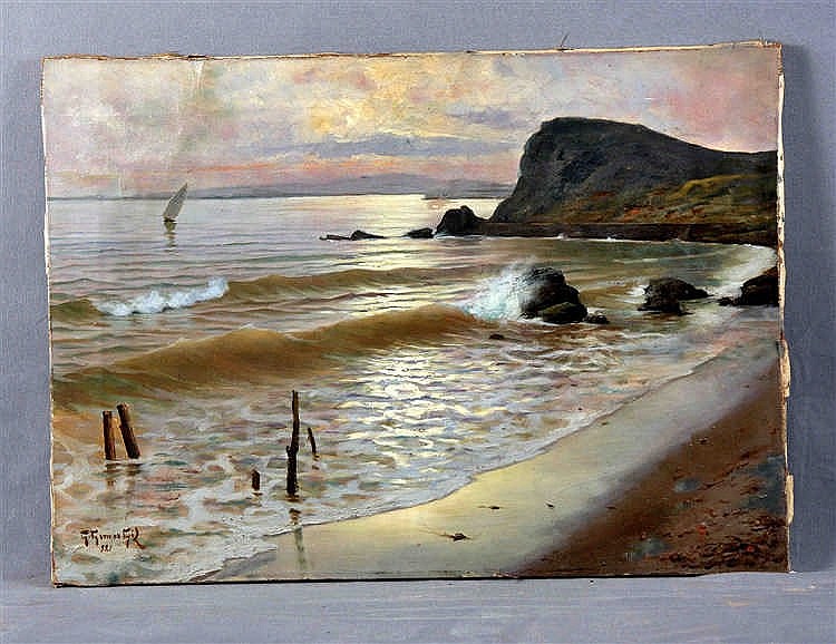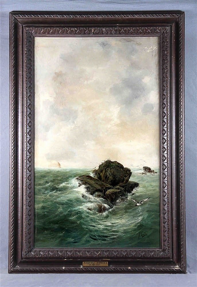 - LAVILLA, NEMESIO (1860-1946). “Marina”. Óleo sobre lienzo, de 101×60,5 cm