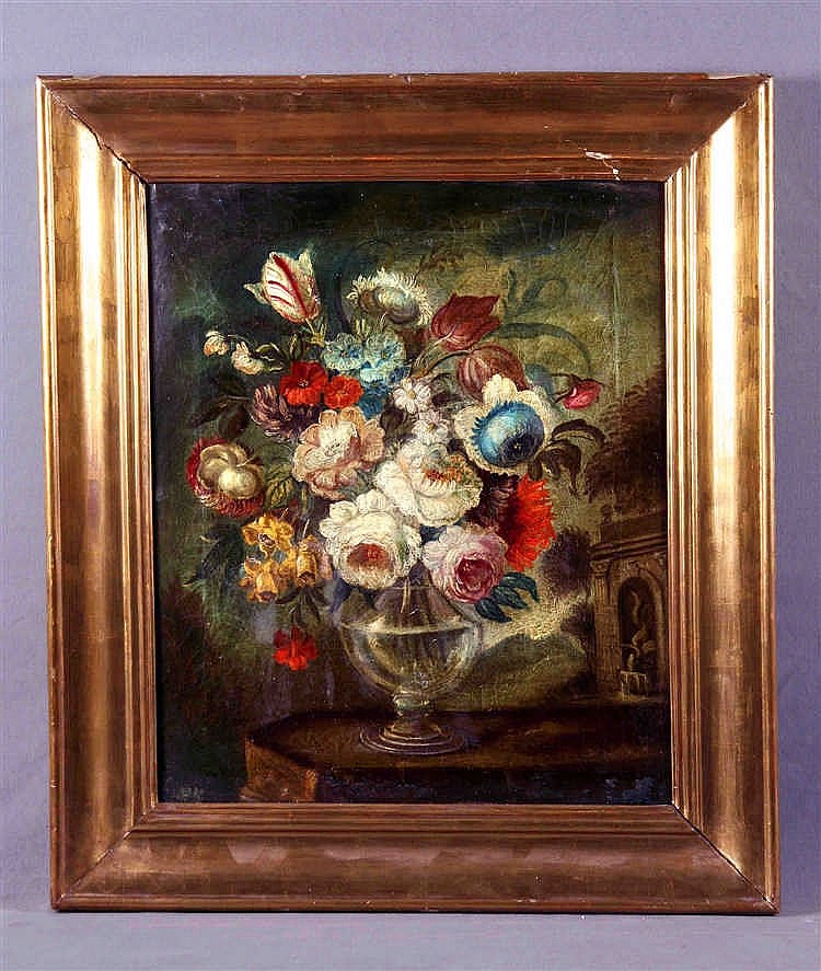 - ARELLANO, SIGUIENDO A JUAN DE. “Composición de jarrón con flores”. Óleo sobre lienzo, de 57×48 cm