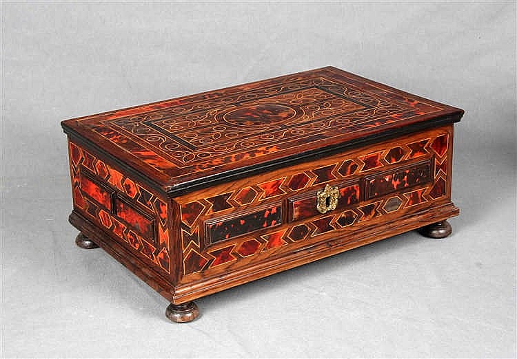 Y como curiosidades vemos dos lotes. El primero es un juego de ajedrez (10,5 x 50,5 x 25,5 cm) en marfil tallado, de los años 40. El tablero tiene forma de estuche de madera. Saldrá a subasta en 1.100€ (ver). El segundo y último lote destacado es un costurero flamenco en madera de nogal y boj (17,5 x 44 x 29 cm), del siglo XVIII, con incrustaciones en carey. El interior posee dos compartimentos y espejo, con cerradura en bronce. Saldrá a subasta por 950€ (ver).